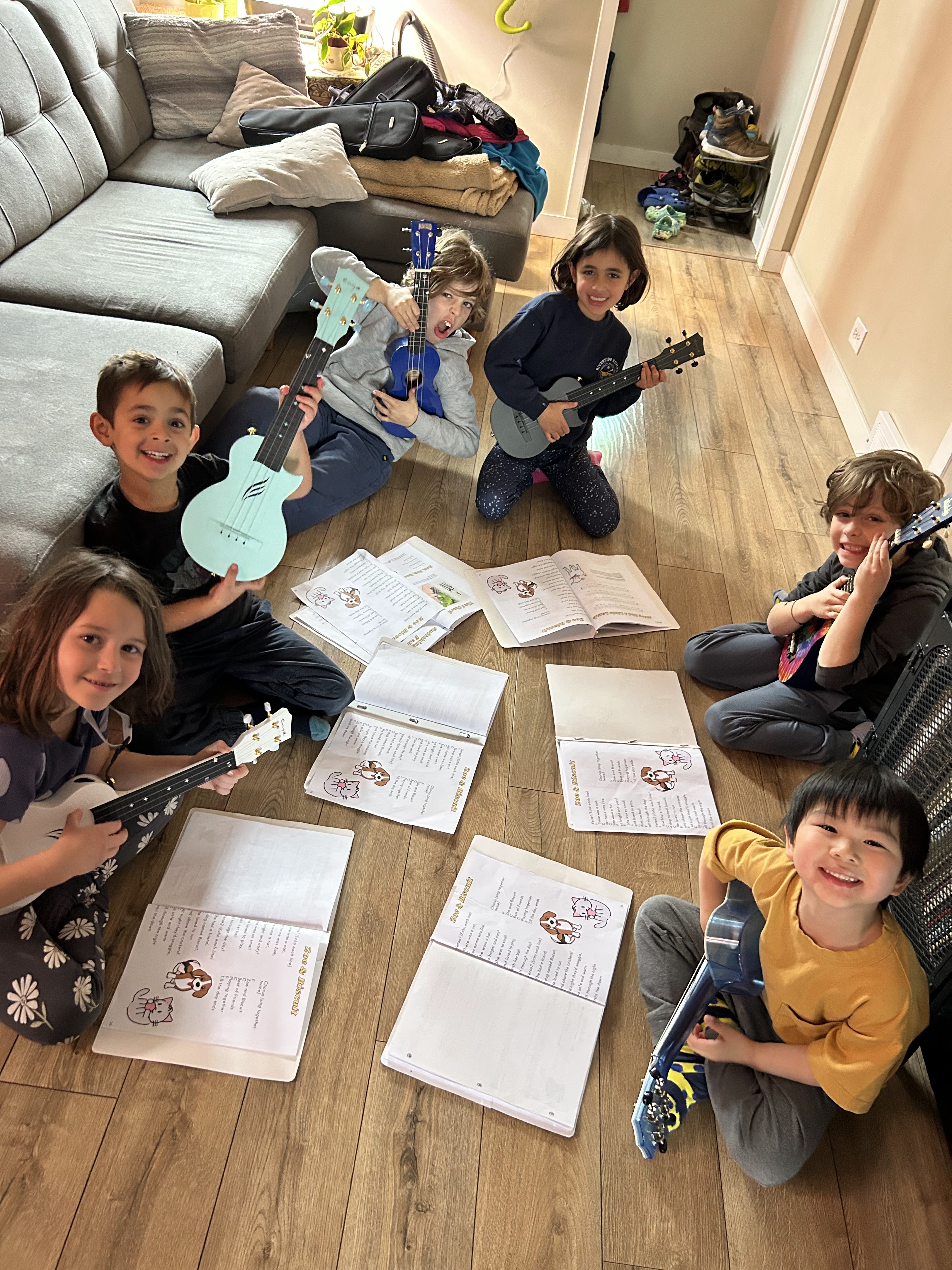 For older children in private or semi-private lessons, we might explore coming up with unique melodies or creating new chord progressions on the ukulele or piano.